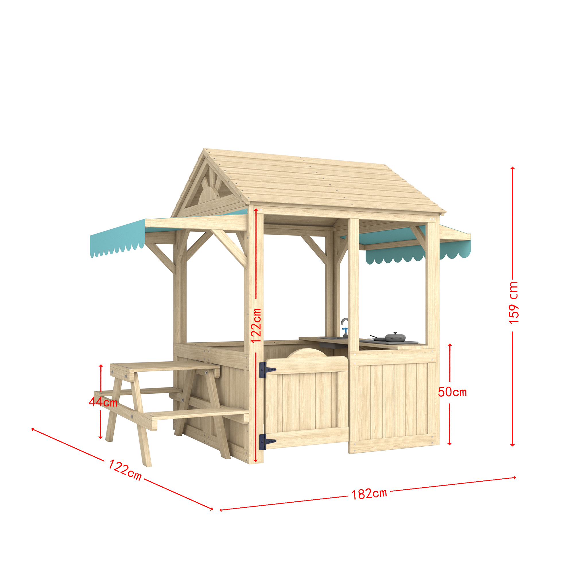 Playhouse kayu kanak-kanak ini oleh Wideway dibuat dari kayu premium, memastikan keramahan, kekuatan, dan ketahanan. Mengukur 182 × 122 × 159cm, struktur menyediakan ruang yang mencukupi untuk bermain imajinatif sambil menjamin keselamatan. The Playhouse mempunyai meja kerja dengan sinki kecil, bersama dengan meja sampingan dan bangku, sesuai untuk aktiviti peranan dan kumpulan. Bumbung bernada dengan warna kain berwarna -warni menambah daya tarikan dan fungsi, menjadikannya sesuai untuk kegunaan luaran. Setiap perincian digilap dengan teliti untuk tepi lancar, melindungi kanak -kanak semasa bermain. Ideal untuk halaman belakang atau tadika, Playhouse ini mewujudkan persekitaran yang menyeronokkan dan selamat. Dengan bertahun -tahun kepakaran dalam produk kanak -kanak luar, Wideway memastikan kualiti yang boleh dipercayai yang dipercayai oleh pelanggan di seluruh dunia.